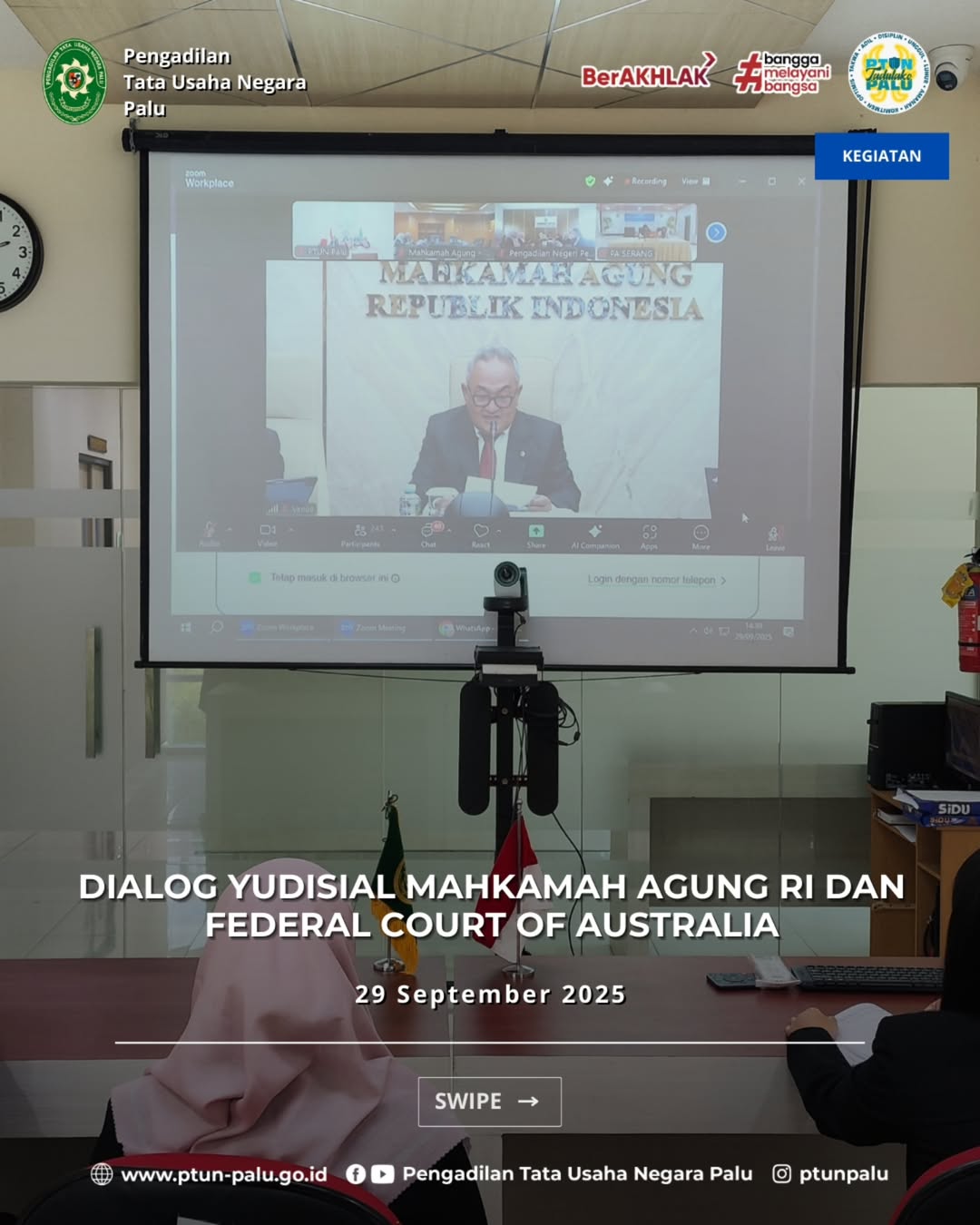 Kuliah Umum & Dialog Yudisial Secara Daring Berdasarkan Surat Badan Strategi Kebijakan Pendidikan dan Pelatihan Hukum dan Peradilan Nomor: 1090/BSDK/DL1.6/IX/2025 tanggal 29 September 2025, dan Instruksi Ketua Pengadilan Tata Usaha Negara Palu, Para Hakim Pengadilan Tata Usaha Negara Palu mengikuti kegiatan Kuliah Umum dan Dialog Yudisial tentang “Keadilan Iklim dan Litigasi Lingkungan: Tantangan bagi Peradilan” …