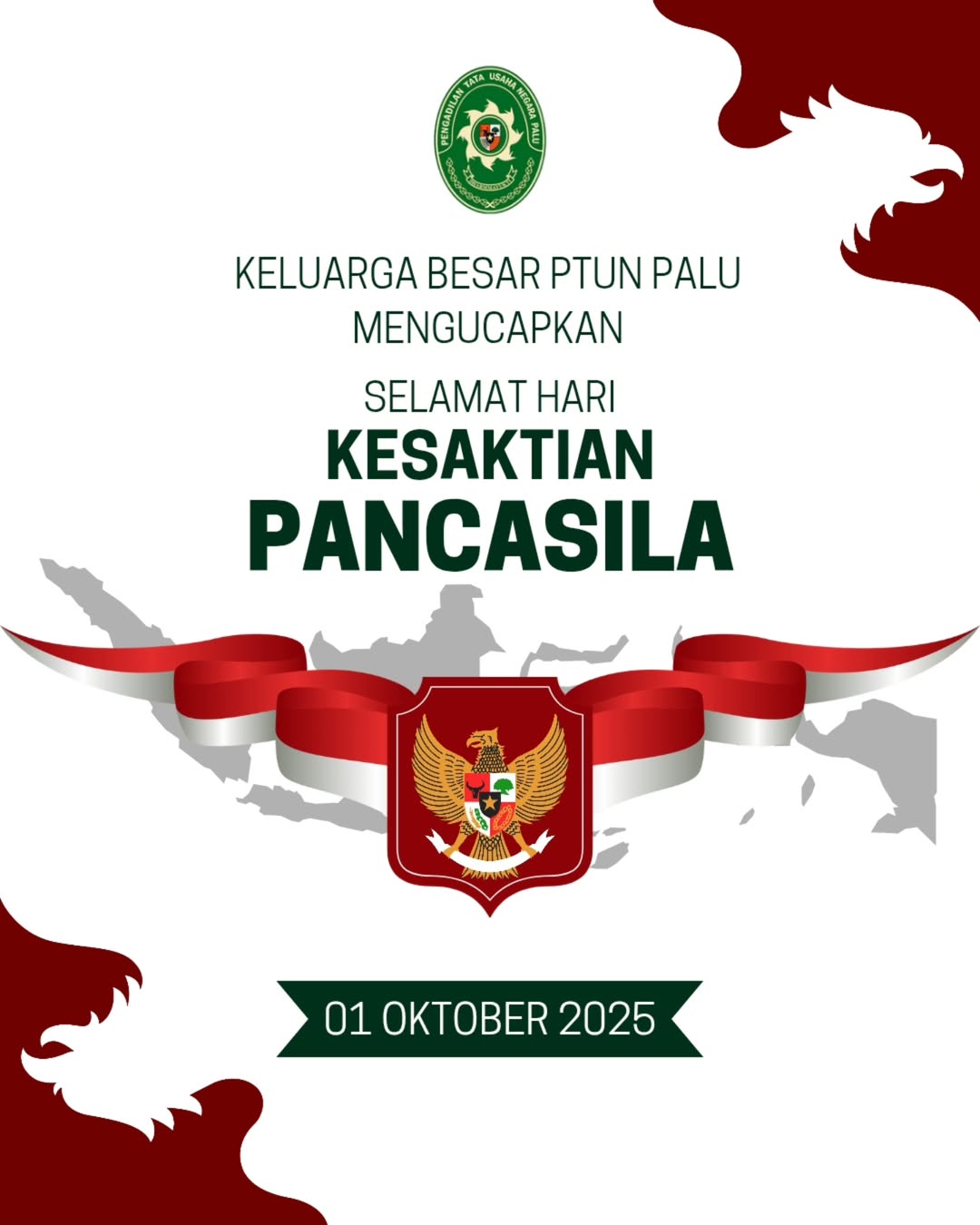 Selamat Hari Kesaktian Pancasila Keluarga Besar Pengadilan Tata Usaha Negara Palu mengucapkan Selamat Hari Lahir Pancasila. “Pancasila Perekat Bangsa Menuju Indonesia Raya”