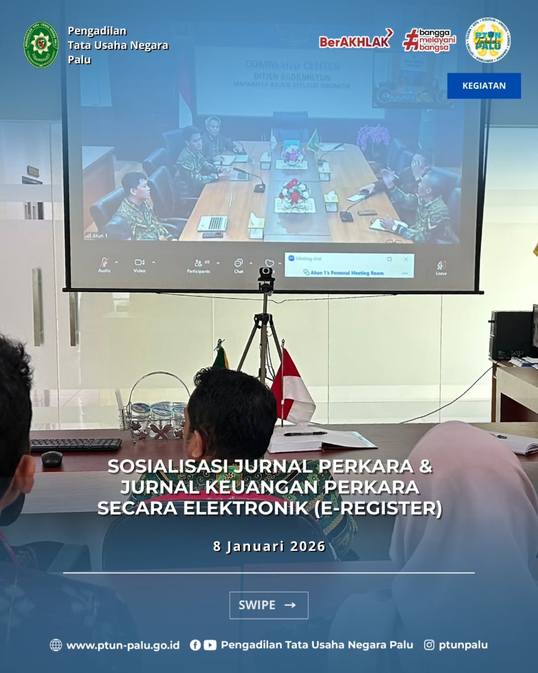 Sosialisasi Register Perkara dan Jurnal Keuangan Perkara secara Elektronik (e-Register) Kepaniteraan Pengadilan Tata Usaha Negara Palu menghadiri kegiatan Sosialisasi Register Perkara dan Jurnal Keuangan Perkara secara Elektronik (e-Register) oleh Direktorat Badan Peradilan Militer Dan Peradilan Tata Usaha Negara Mahkamah Agung Republik Indonesia berdasarkan Surat Plt. Direktur Pembinaan Teknis dan Administrasi Peradilan Tata Usaha Negara Nomor: …