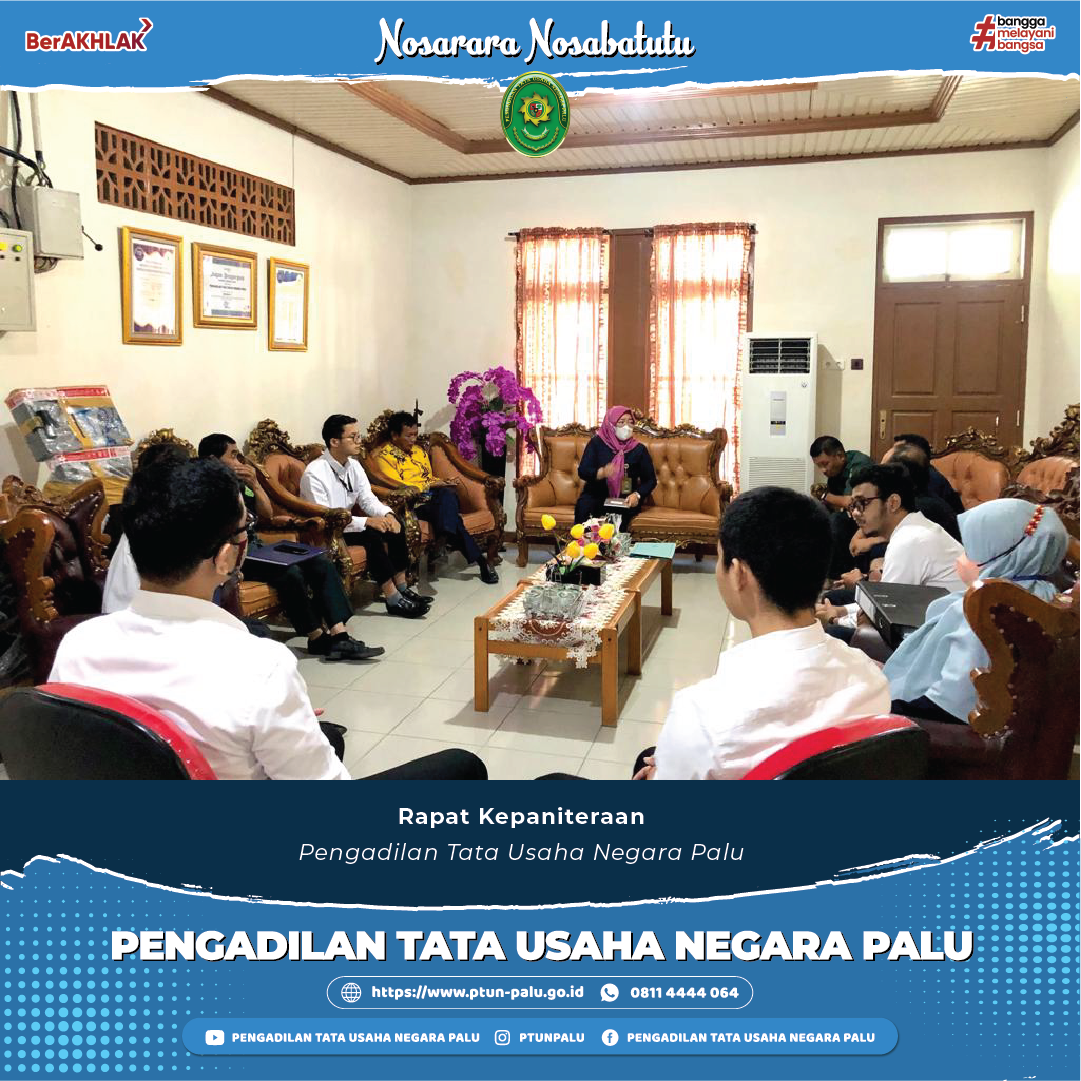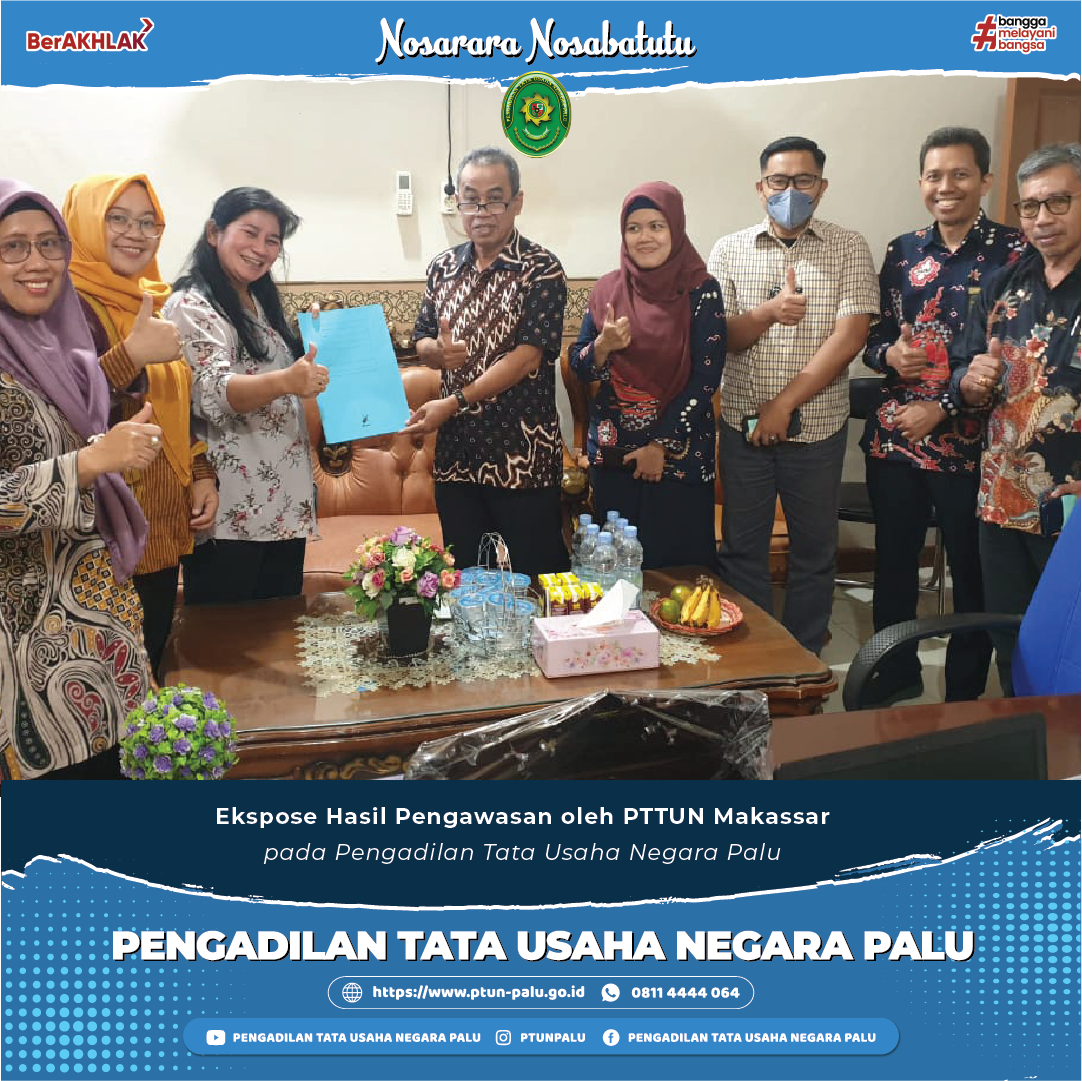 Ekspose Hasil Pengawasan oleh PTTUN Makassar Palu, 17 Juni 2022 Penyerahan hasil pengawasan oleh Pengadilan Tinggi Tata Usaha Negara Makassar kepada Pengadilan Tata Usaha Negara Palu pada hari Jum’at, 17 Juni 2022, pukul 08.30 WITA. Dengan diserahkannya hasil pengawasan oleh Ketua tim pengawasan dan pembinaan PTTUN Makassar, Bapak Kasim, S.H., M.H. (Hakim Tinggi), kepada Ketua …