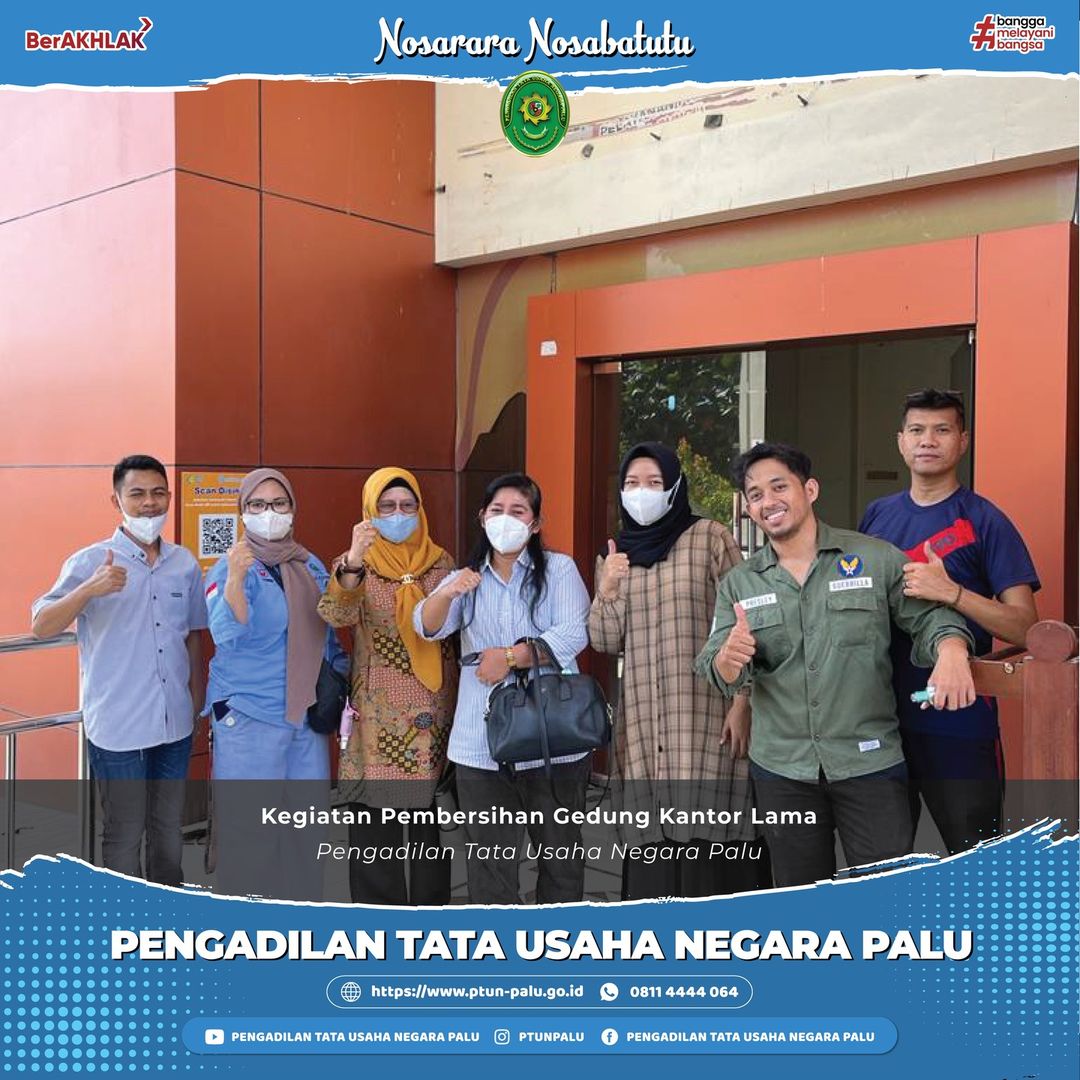 Kegiatan Pembersihan Gedung Kantor Lama PTUN Palu Palu, 3 Juni 2022 Ketua PTUN Palu bersama dengan Sekretaris serta tim PPNPN (Tim Tuntas) melakukan pembersihan gedung kantor lama PTUN Palu yang beralamat di Jl. Prof Moh. Yamin No. 52, yang rencananya akan dilakukan pembongkaran dan pembangunan kembali. #humasmahkamahagung#ditjenbadilmiltun#pttunmakassar#ptunpalu#nosararanosabatutu