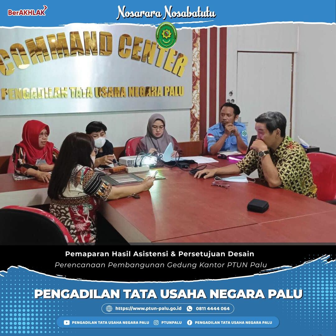 Pemaparan Hasil Asistensi & Persetujuan Desain Perencanaan Pembangunan Gedung Kantor PTUN Palu Tahun 2022 Palu, 2 Juni 2022 Pemaparan hasil asistensi & persetujuan desain pekerjaan perencanaan pembangunan gedung kantor PTUN Palu tahun2022 oleh Konsultan Perencana yg dihadiri oleh Ketua, Wakil Ketua, Sekretaris selaku KPA dan Kasubag Kepegawaian sebagai PPK. #humasmahkamahagung#ditjenbadilmiltun#pttunmakassar#ptunpalu#nosararanosabatutu