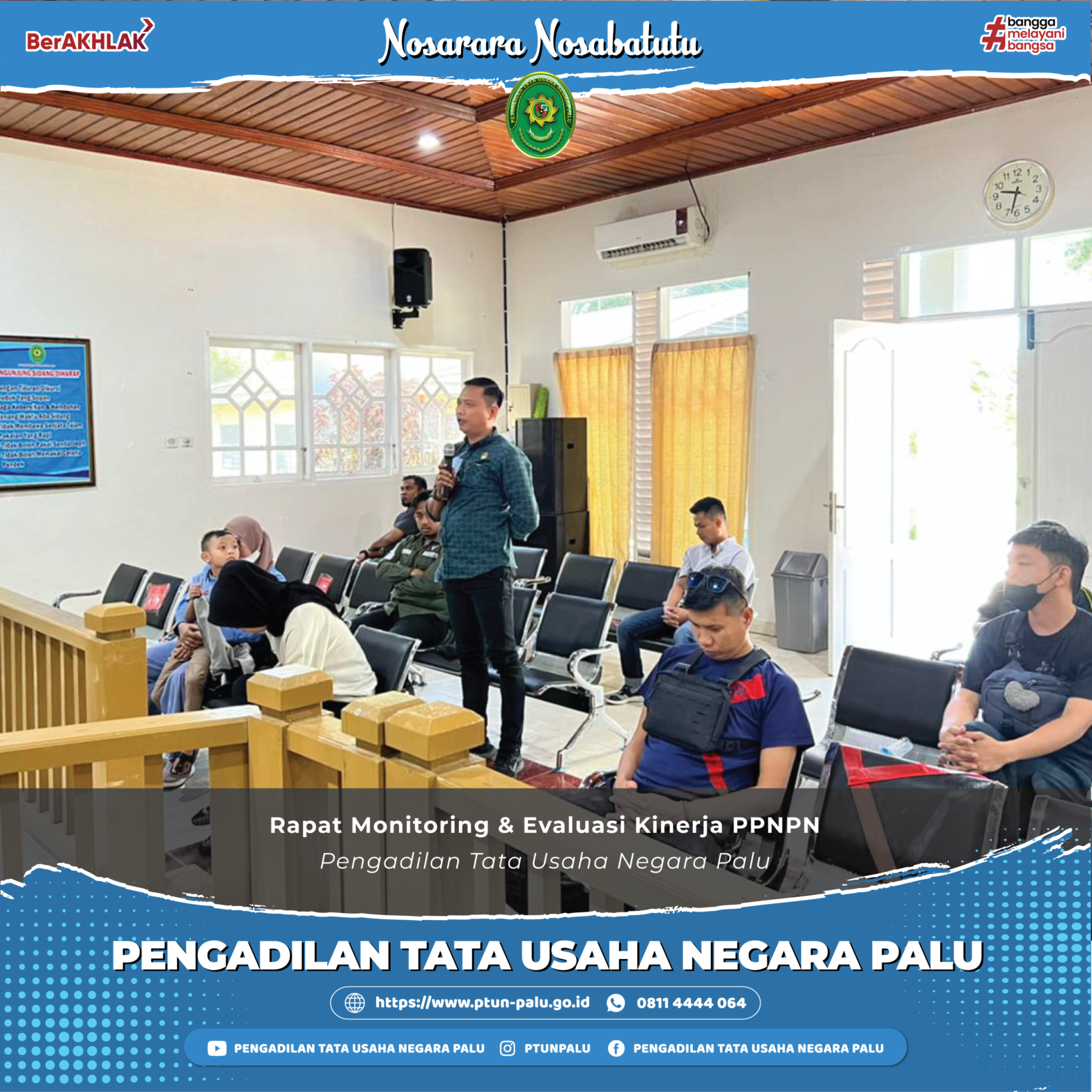 Rapat Monitoring dan Evaluasi Kinerja PPNPN PTUN Palu Palu, 3 Juni 2022 Ketua PTUN Palu bersama dengan Sekretaris serta Kasub Umum & Keuangan melakukan rapat monitoring dan evaluasi terkait kinerja PPNPN PTUN Palu. Dengan melakukan pengawasan serta monitoring dan evaluasi, diharapkan kinerja PPNPN dapat lebih maksimal dalam pelaksanaan tugasnya serta membantu dalam pelaksanaan kegiatan kantor. …