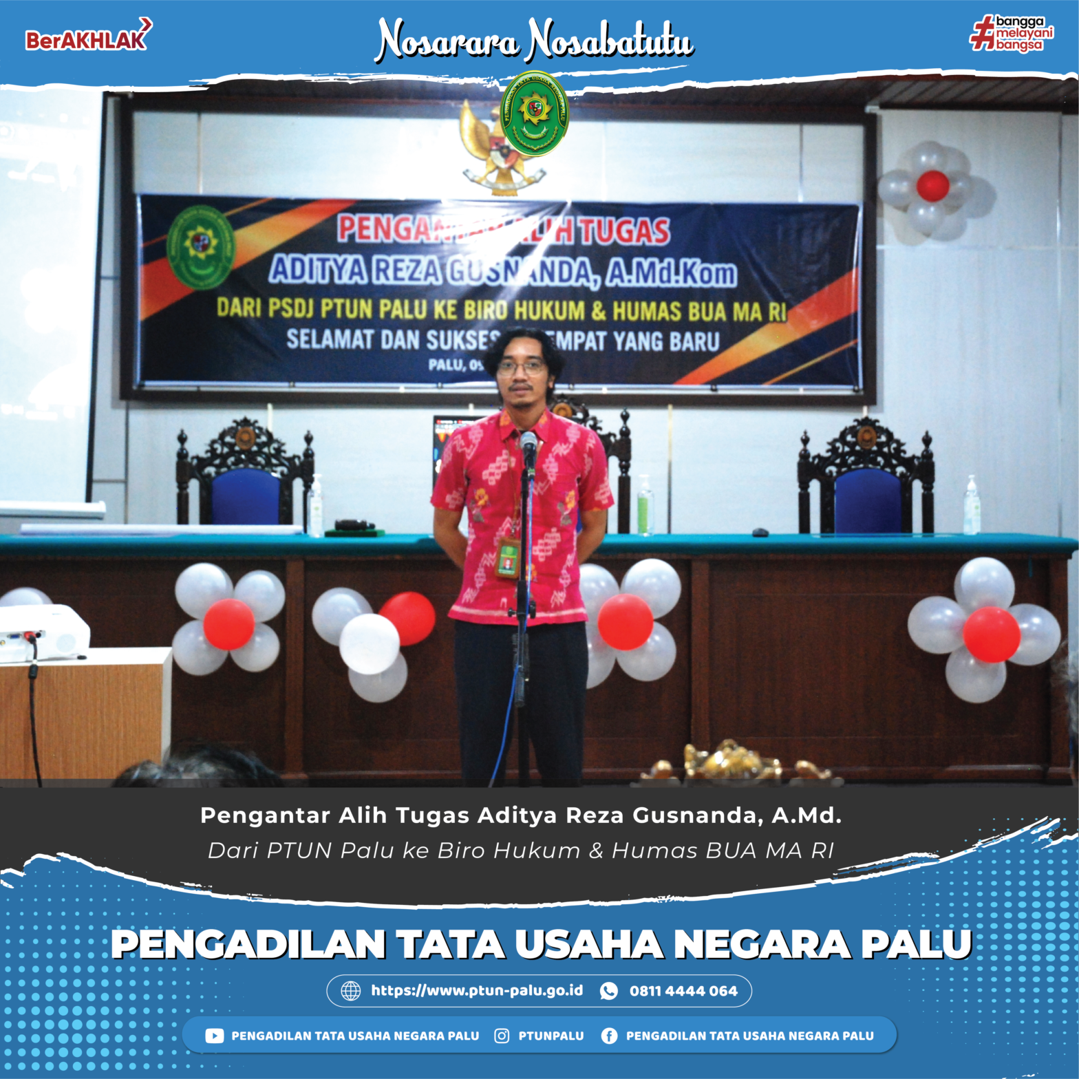 Pengantar Alih Tugas Aditya Reza Gusnanda, A.Md, dari PTUN Palu ke Biro Hukum & Humas MA RI
