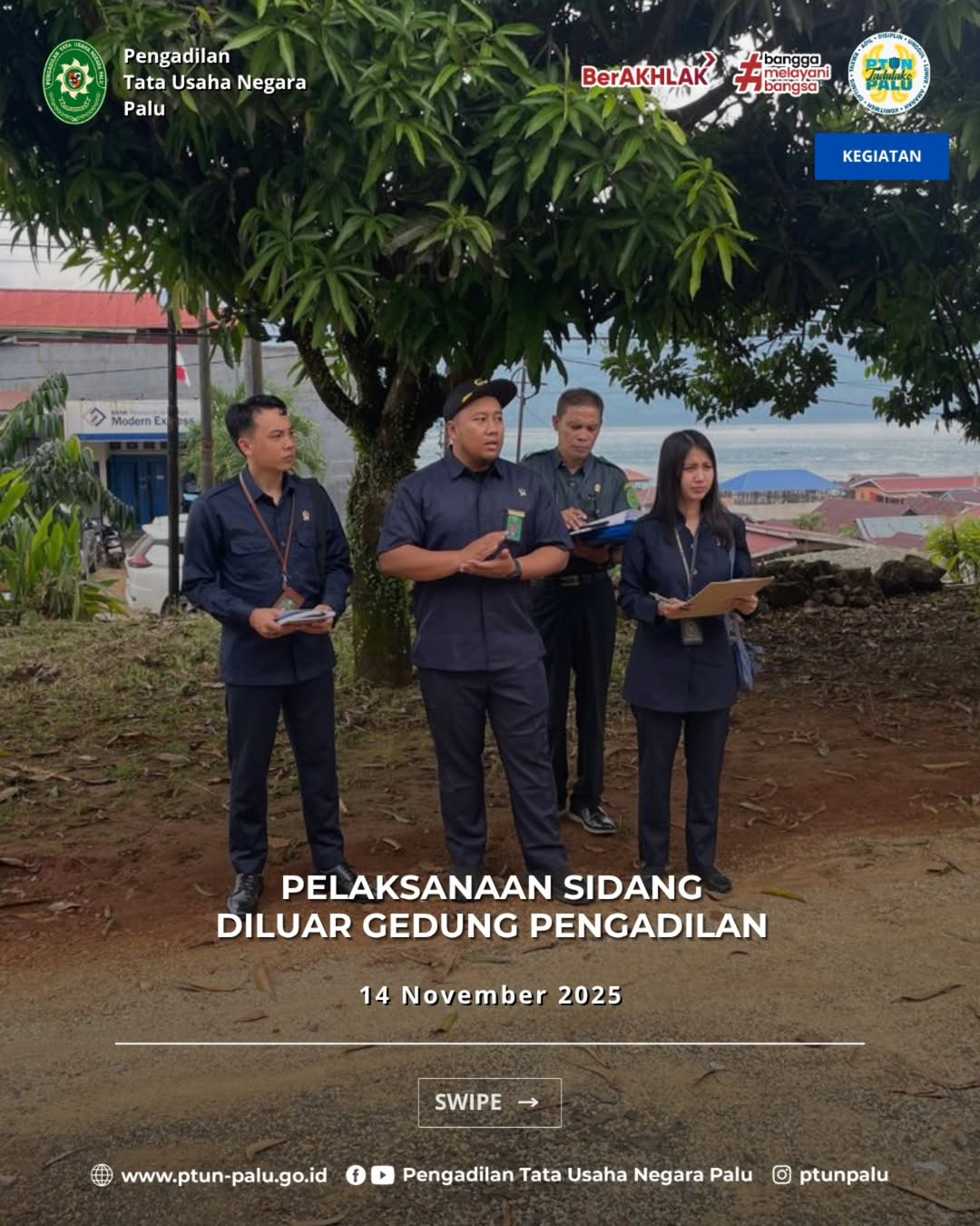 Pelaksanaan Sidang Diluar Gedung Pengadilan Pengadilan Tata Usaha Negara Palu melalui Majelis Hakim pada Perkara Nomor: 27/G/2025/PTUN.PL telah melaksanakan Sidang di luar Gedung Pengadilan berdasarkan Surat Tugas Nomor 601/KPTUN.W4-TUN2/ST.HK2.7/XI/2025 tertanggal 3 November 2025. Sidang di luar Gedung Pengadilan tersebut dilaksanakan dengan diawali agenda Pemeriksaan Setempat (Descente) pada tanggal 12 November 2025 yang bertempat di Desa …