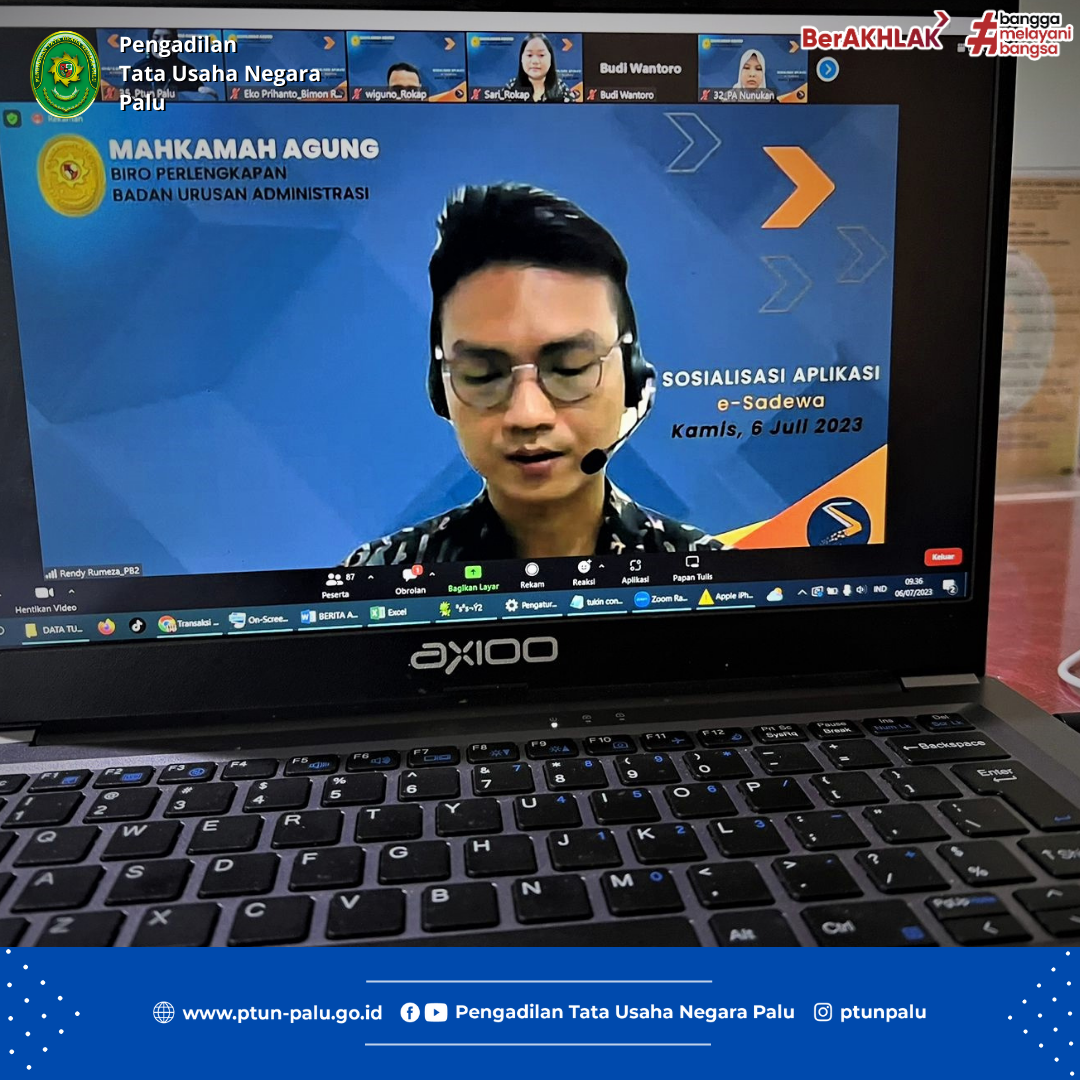 Sosialisasi Aplikasi e-Sadewa secara Virtual Oleh Biro Perlengkapan Badan Urusan Administrasi Mahkamah Agung RI Sebelumnya Selanjutnya Palu, 6 Juli 2023 Kasub Umum dan Keuangan Pengadilan Tata Usaha Negara Palu (PTUN Palu), Ibu Femianti, S.Kom., mengikuti Sosialisasi Aplikasi e-Sadewa secara Virtual yang diselenggarakan oleh Biro Perlengkapan Badan Urusan Administrasi Mahkamah Agung RI pada hari Kamis, 6 …