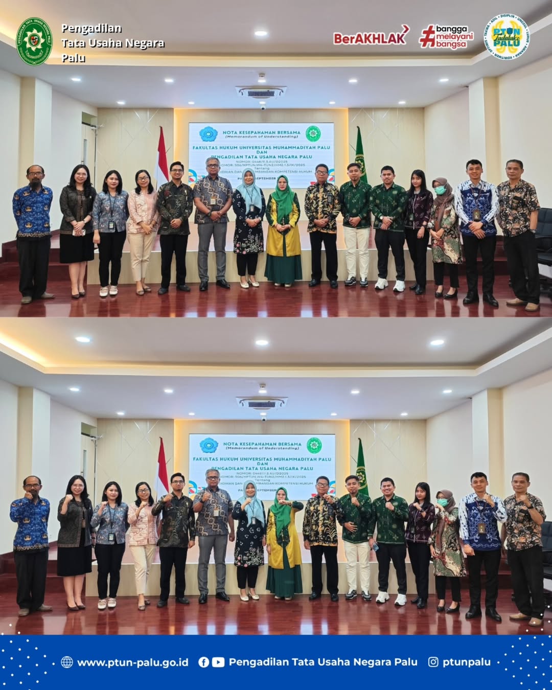 Bertempat di Aula Serbaguna PTUN Palu telah dilaksanakan penandatanganan Nota Kesepahaman (Memorandum of Understanding) Fakultas Hukum Universitas Muhammadiyah Palu dan Pengadilan Tata Usaha Negara Palu tentang Pendidikan dan Pengembangan Kompetensi Hukum.