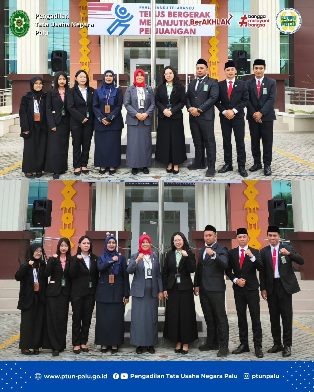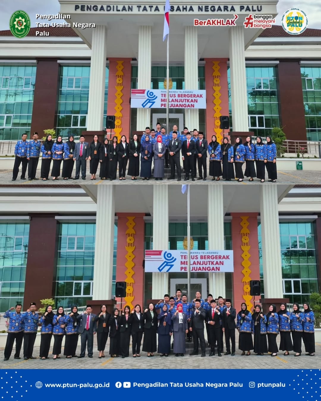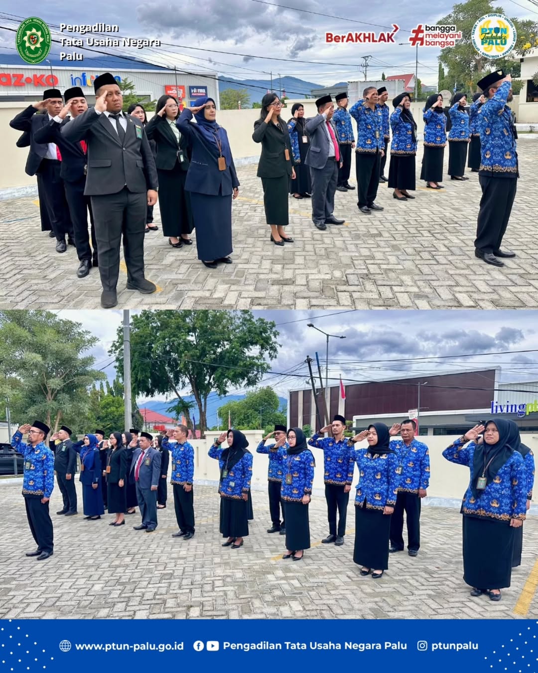 Upacara dipimpin langsung oleh Ketua PTUN Palu ibu Rosidah,S.H., M.H. dan dihadiri oleh seluruh Hakim & Aparatur PTUN Palu.