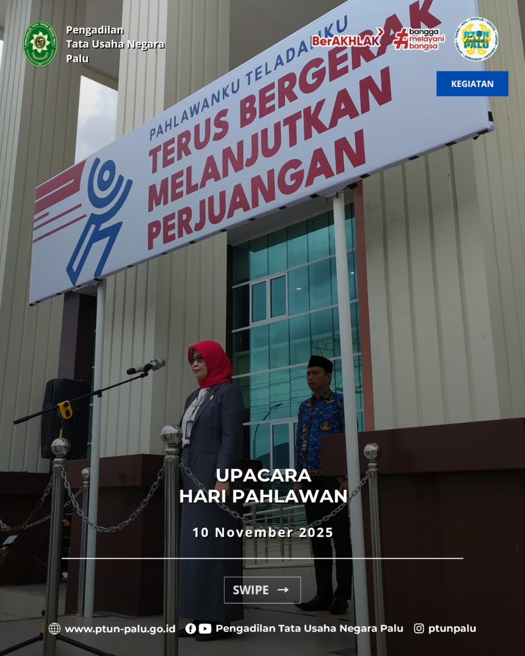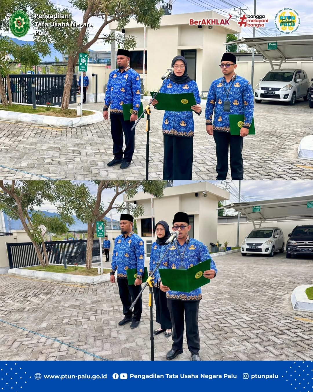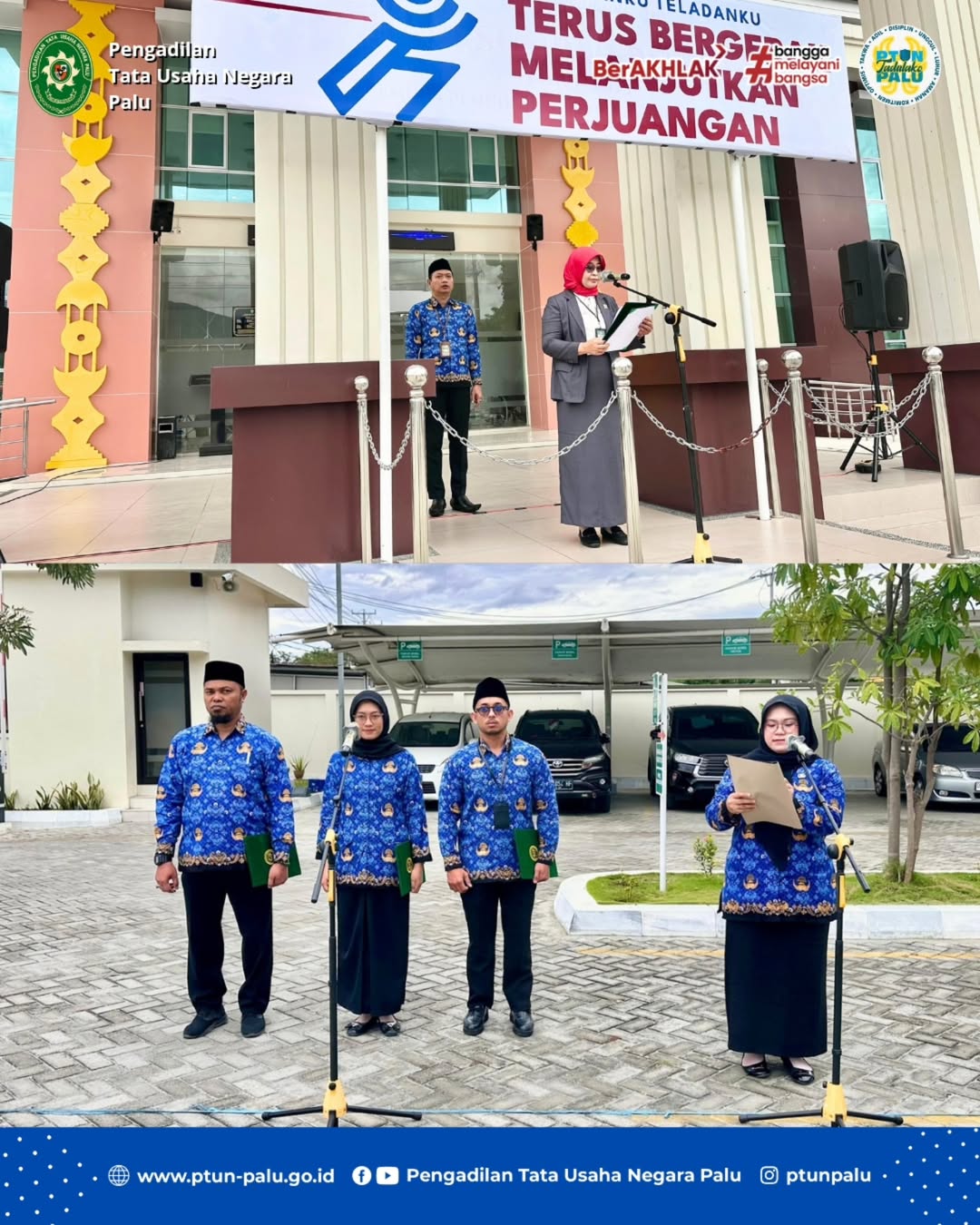 Upacara dipimpin langsung oleh Ketua PTUN Palu ibu Rosidah,S.H., M.H. dan dihadiri oleh seluruh Hakim & Aparatur PTUN Palu.