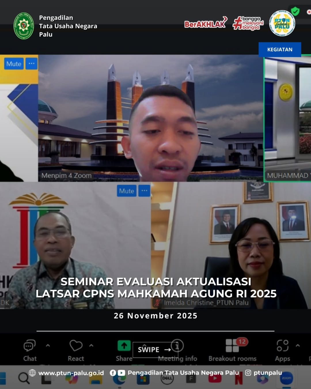 Selamat dan sukses atas pelaksanaan Seminar Evaluasi Aktualisasi Pelatihan Dasar Calon Pegawai Negeri Sipil (Latsar CPNS) Gelombang III Angkatan IV tahun 2025 di Pengadilan Tata Usaha Negara Palu.