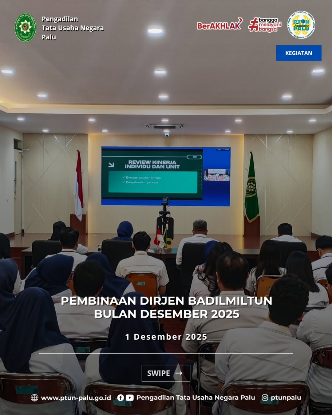 Pembinaan Dirjen Badilmiltun bulan Desember 2025 dilaksanakan secara daring yang diikuti oleh seluruh Aparatur PTUN Palu.
