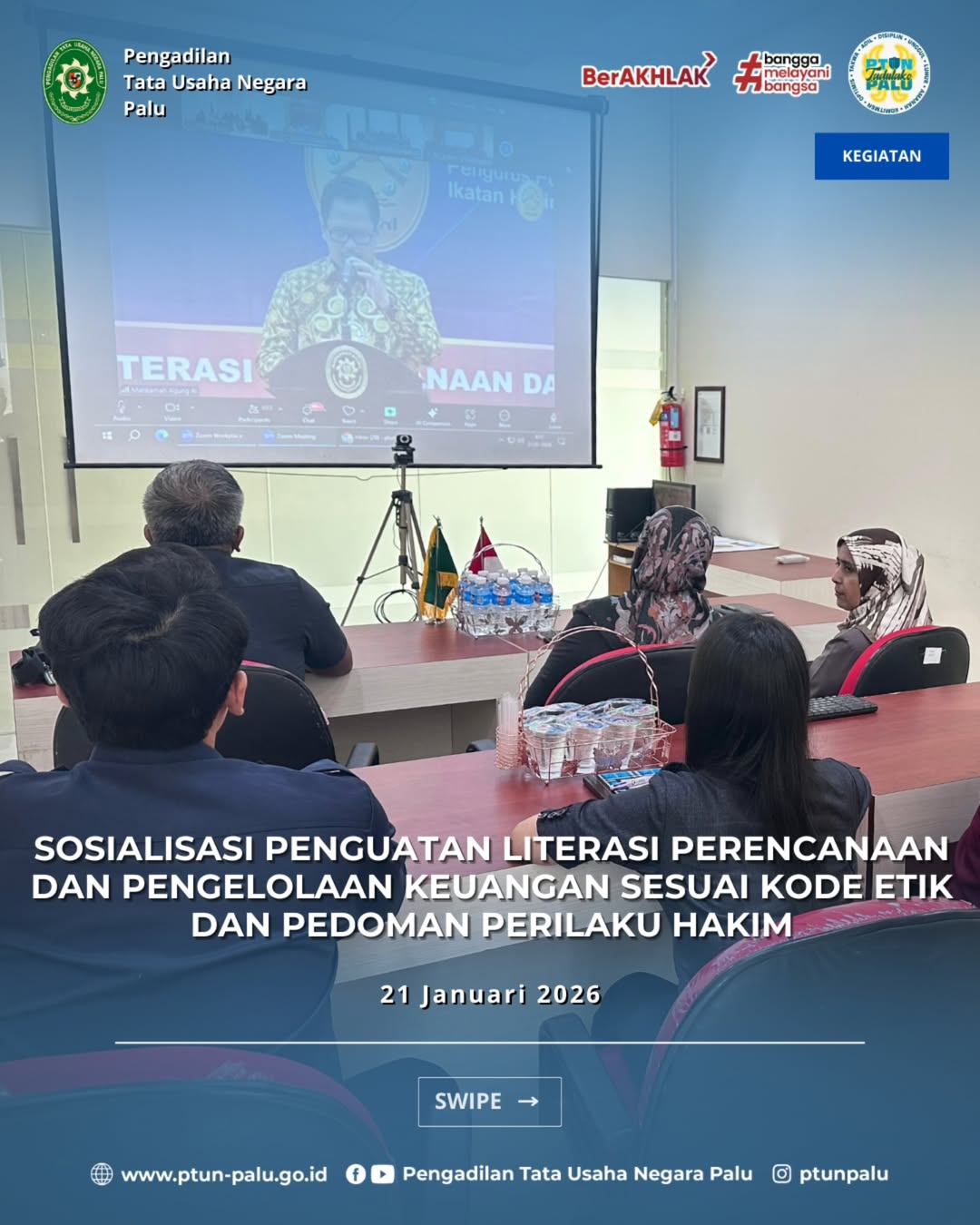 Sosialisasi tentang Penguatan Literasi Perencanaan dan Pengelolaan Keuangan Sesuai Kode Etik dan Pedoman Perilaku Hakim yang dilaksanakan secara daring.