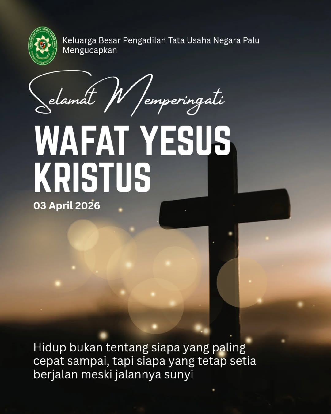 Keluarga Besar Pengadilan Tata Usaha Negara Palu mengucapkan Selamat Memperingati Hari Wafat Yesus Kristus, 3 April 2026.
