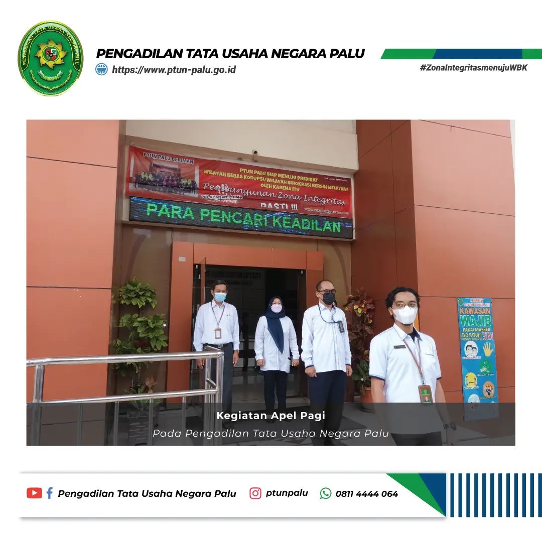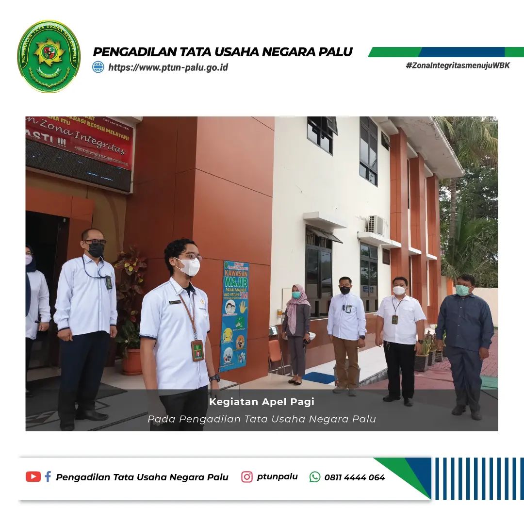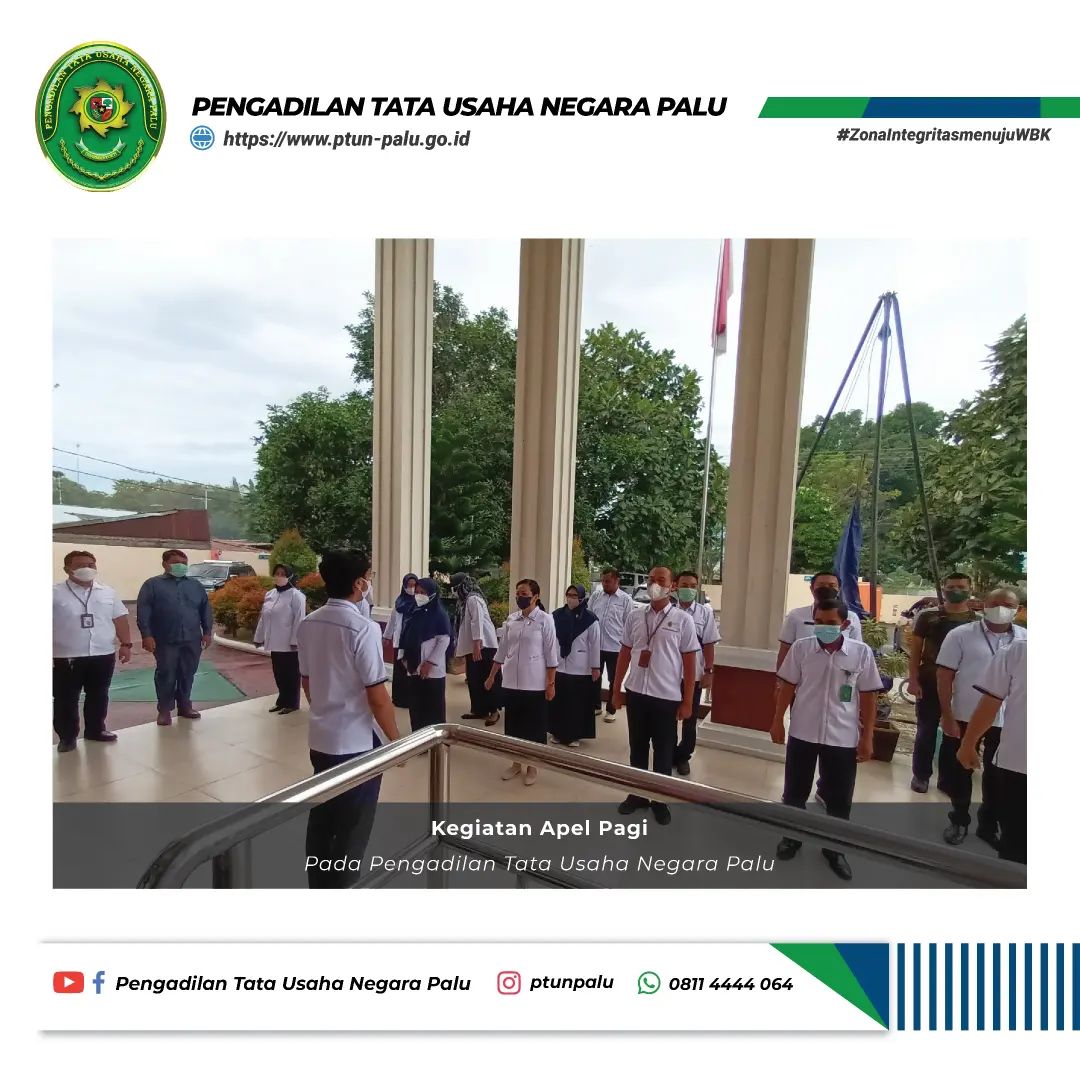 Bertempat di halaman kantor Pengadilan Tata Usaha Negara Palu, seluruh warga PTUN Palu mengikuti kegiatan Apel Pagi pada pukul 08.00 WITA dengan tetap menerapkan protokol kesehatan.