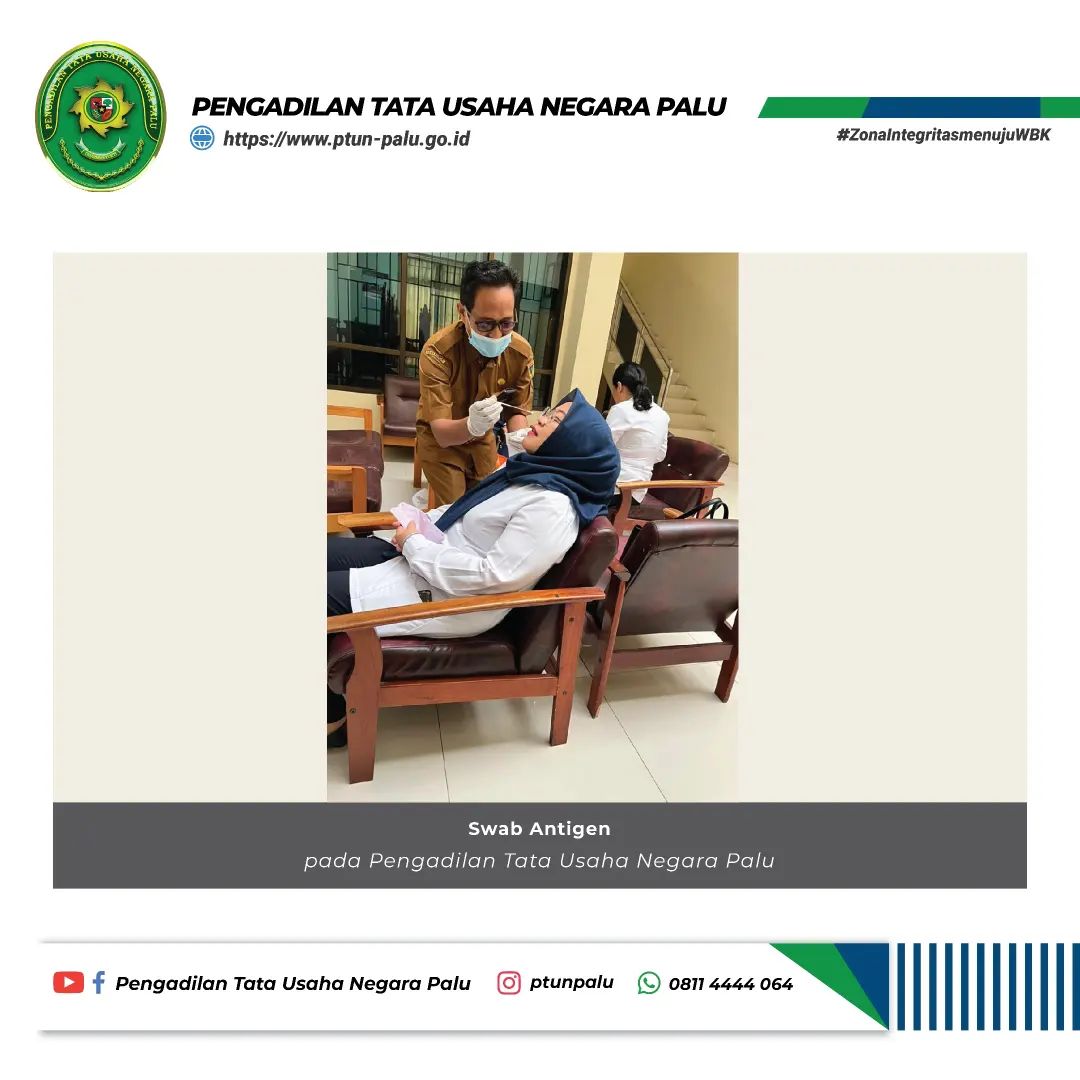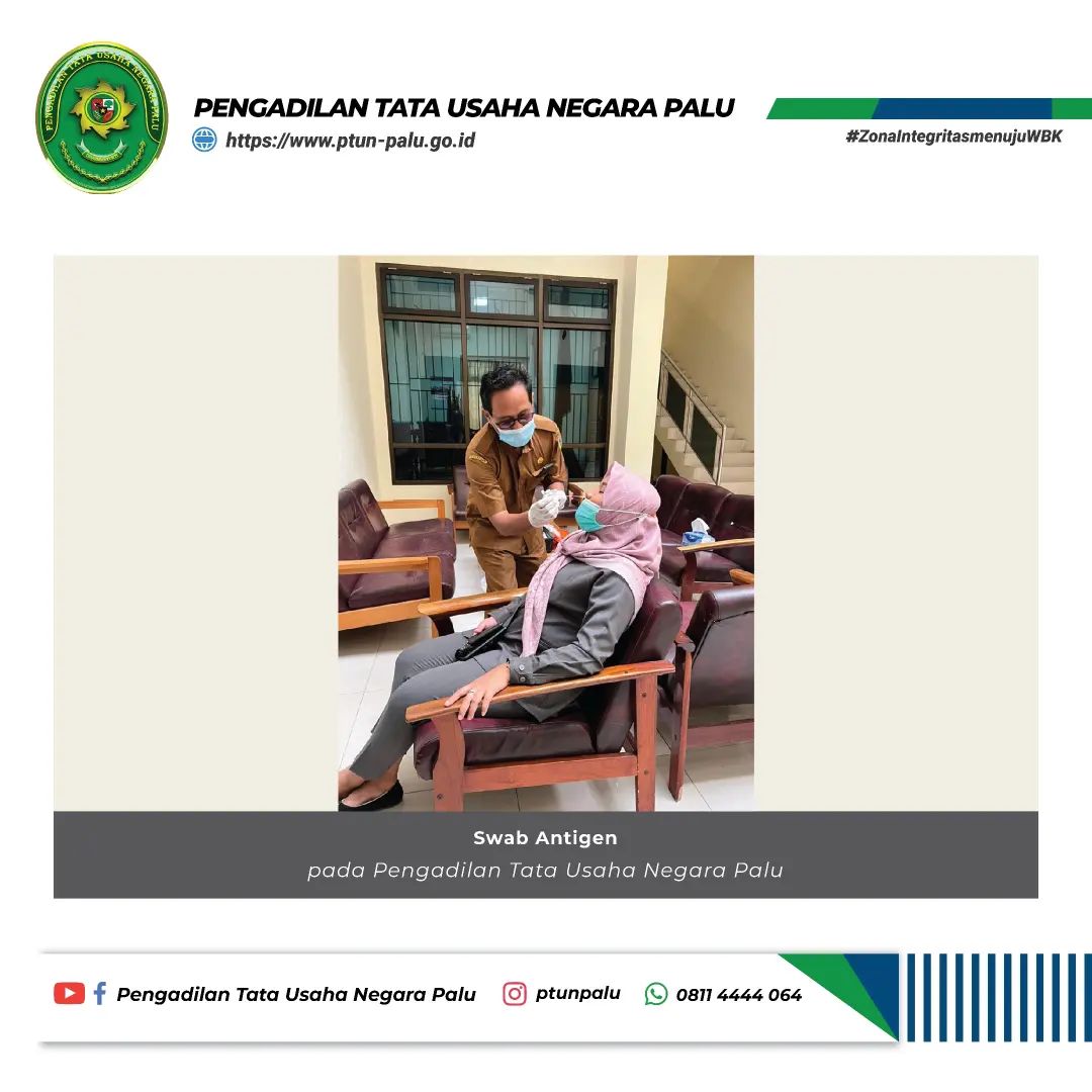 Pelaksanaan Swab Antigen bagi seluruh warga PTUN Palu pada hari Senin, 7 Februari 2022, pukul 07.30 WITA.