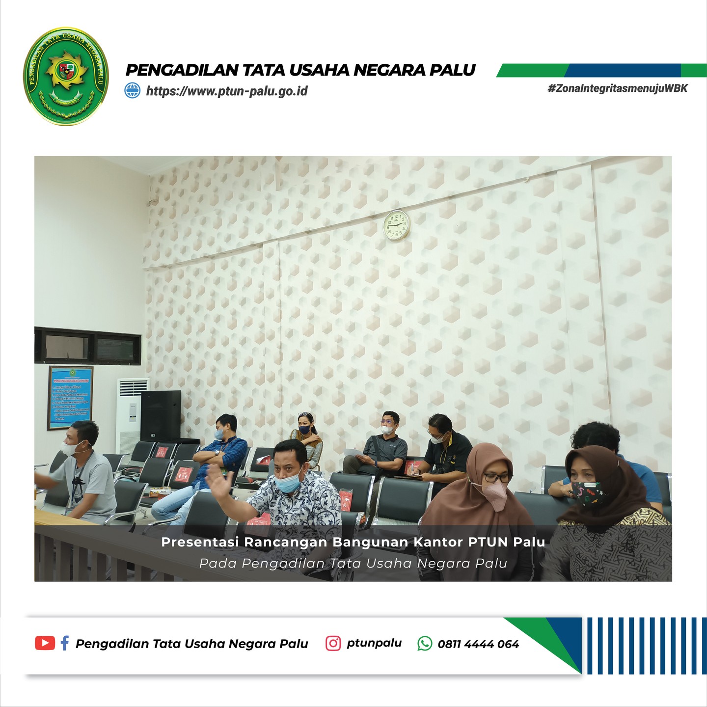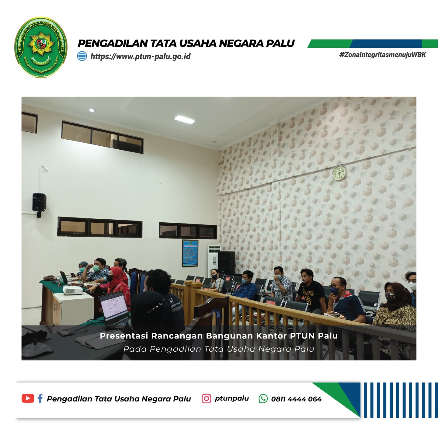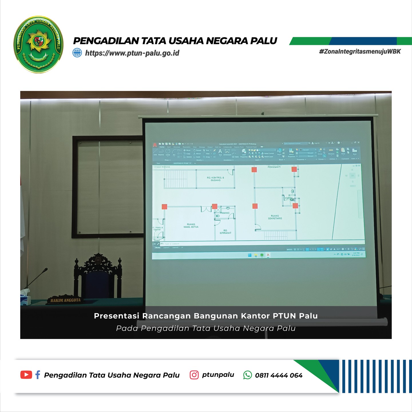 Prensentasi Rancangan Bangungan Kantor PTUN Palu yg dipaparkan oleh Konsultan Perencana pada hari Jum’at, 18 Februari 2022, pukul 14.00 WITA s.d. selesai.