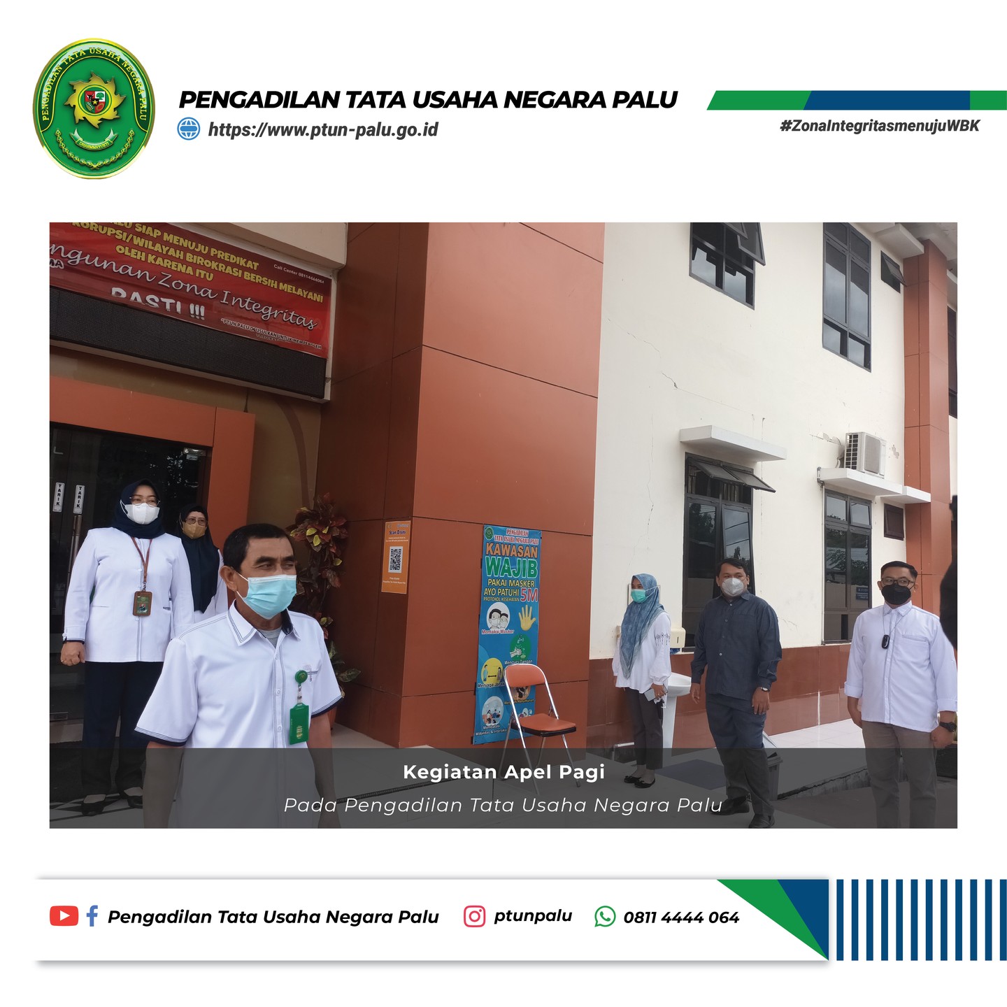 Bertempat di halaman kantor Pengadilan Tata Usaha Negara Palu, seluruh warga PTUN Palu mengikuti kegiatan Apel Pagi pada pukul 08.00 WITA dengan tetap menerapkan protokol kesehatan.