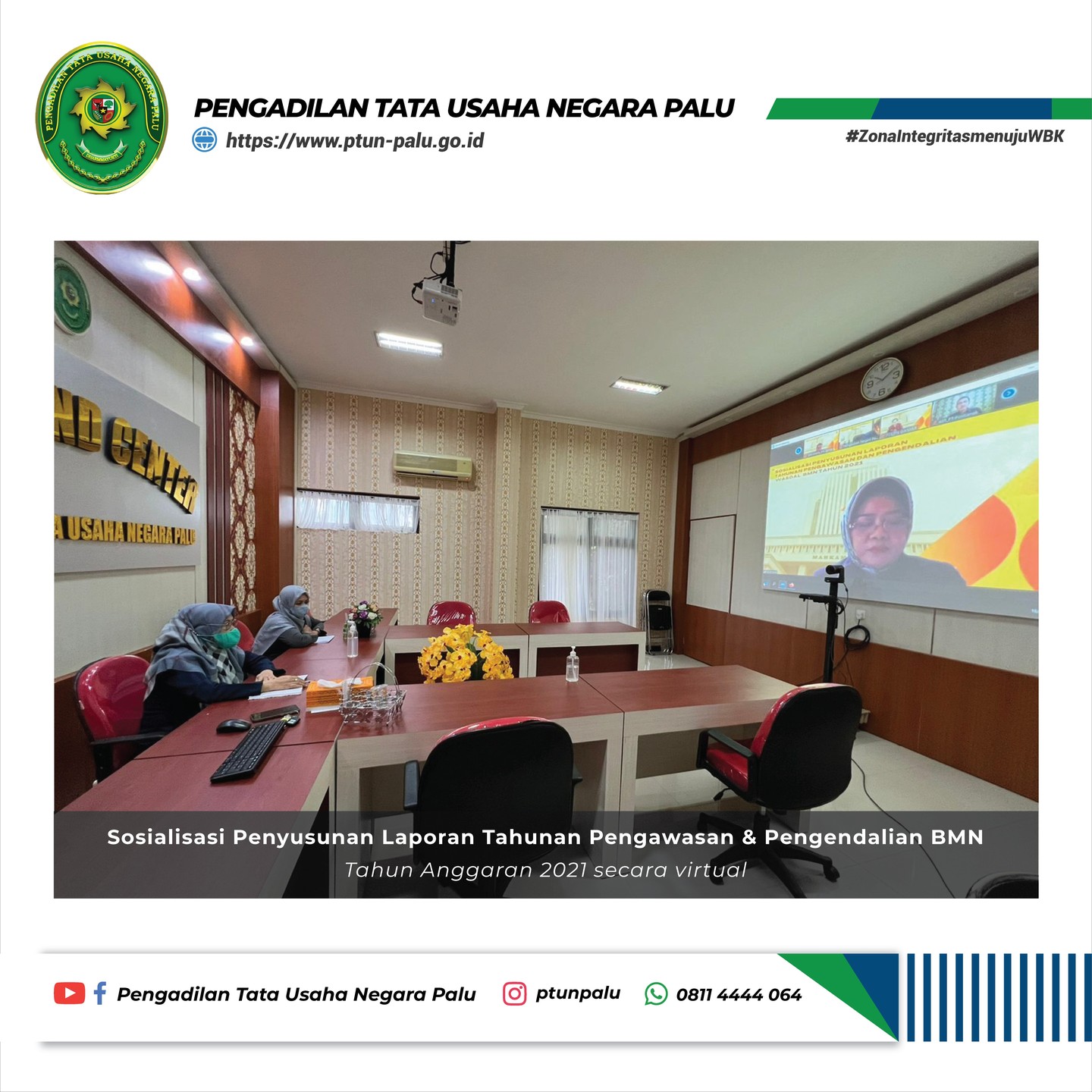 Pelaksanaan Sosialisasi Laporan Tahunan Pengawasan & Pengendalian BMN Tahun Anggaran 2021 secara virtual pada hari Rabu, 17 Maret 2022, pukul 09.30 WITA, melalui aplikasi Zoom Meeting.