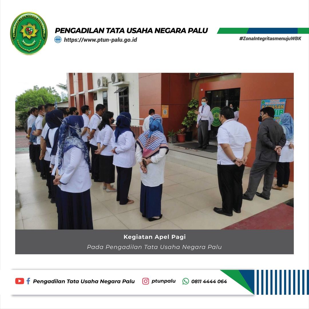 Bertempat di halaman kantor Pengadilan Tata Usaha Negara Palu, seluruh warga PTUN Palu mengikuti kegiatan Apel Pagi pada pukul 08.00 WITA dengan tetap menerapkan protokol kesehatan.