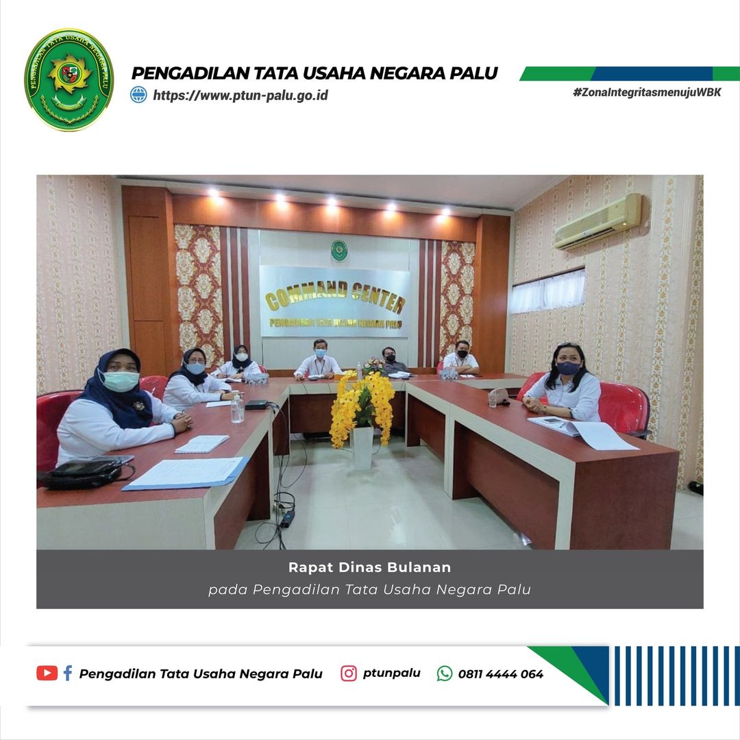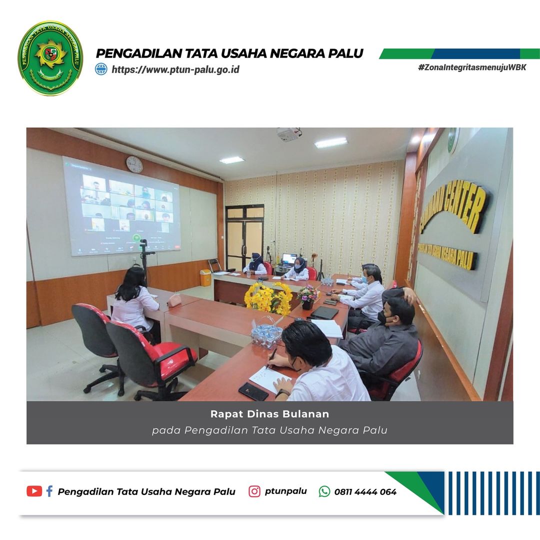 Pelaksanaan Rapat Dinas Bulanan Bulan Maret 2022 dan Rapat Monitoring Evaluasi Zona Integritas pada Pengadilan Tata Usaha Negara Palu secara offline dan online melalui aplikasi zoom meeting pada hari Senin, 21 Maret 2022.