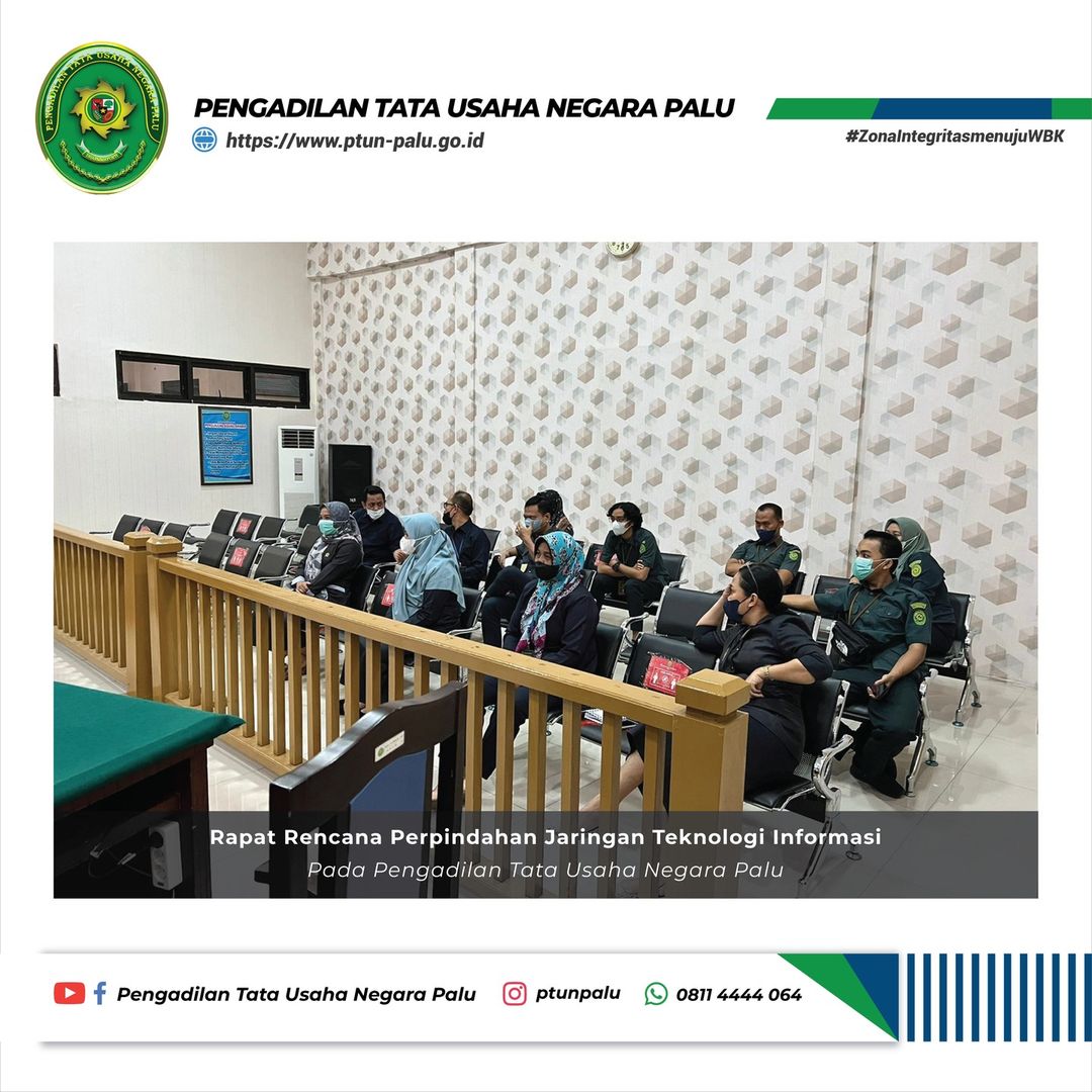 Rapat Rencana Perpindahan Jaringan Teknologi Informasi Pengadilan Tata Usaha Negara Palu pada hari Selasa, 13 April 2022, pukul 13.00 WITA s.d. selesai.