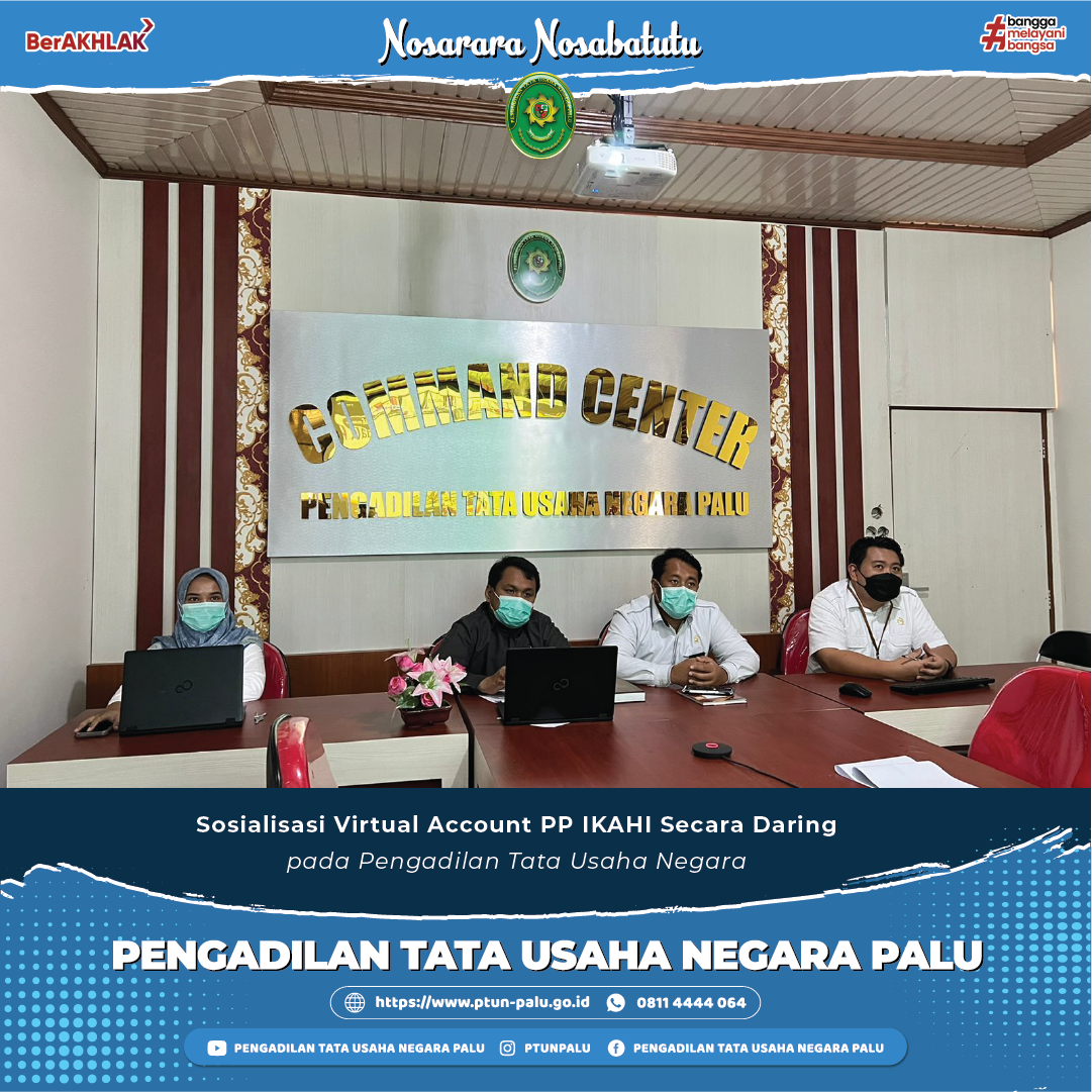 Pengadilan Tata Usaha Negara Palu (PTUN Palu) menghadiri Sosialisasi Virtual Account PP IKAHI secara daring melalui aplikasi zoom meeting pada hari Senin, 27 Juni 2022 mulai pukul 09.00 WITA s.d. selesai.