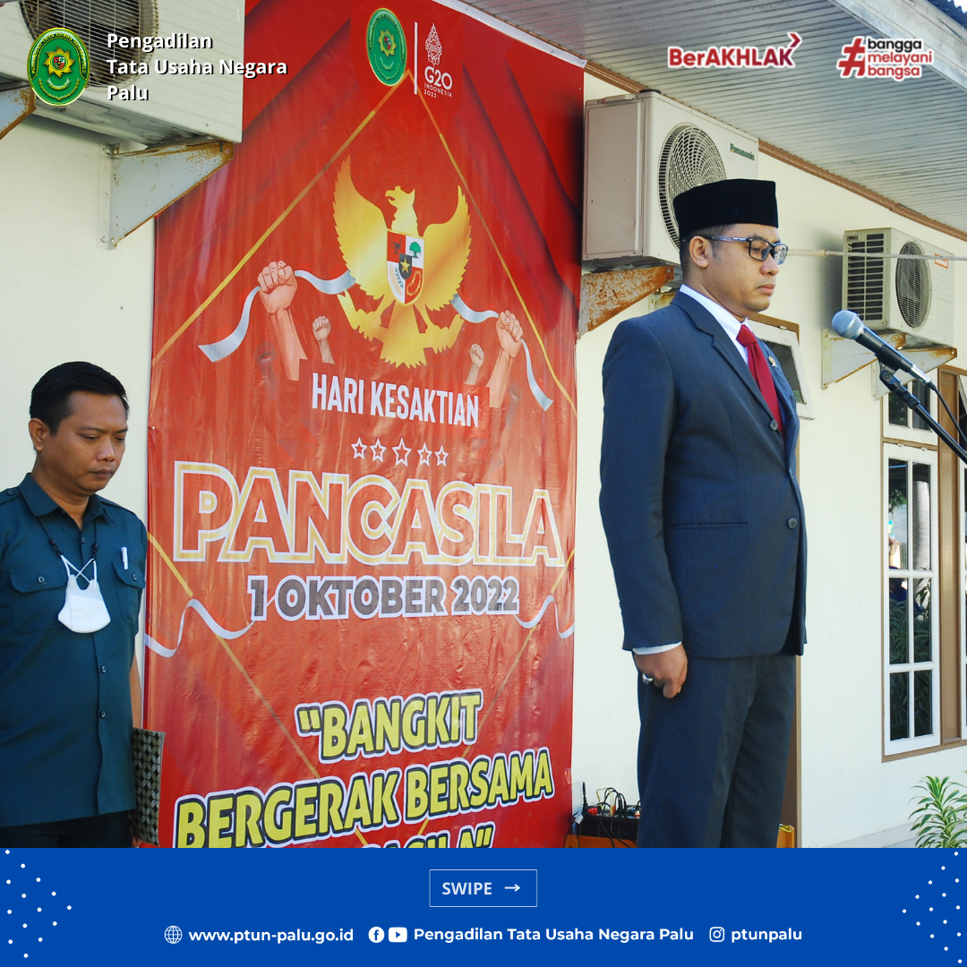 Pengadilan Tata Usaha Negara Palu (PTUN Palu) melaksanakan Upacara Peringatan Hari Kesaktian Pancasila pada hari Sabtu, 1 Oktober 2022 pukul 07.15 WITA s.d. selesai.